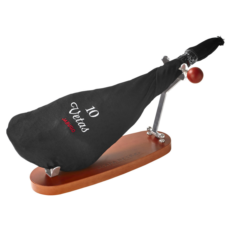 Deze Ham Capa Negra Cebo uit Jabugo, gemaakt van 50% Ibérico varken, heeft een volle, ronde smaak en zacht smeltend vet. Dankzij een rijping van 24 tot 30 maanden ontwikkelt hij een rijke en aromatische textuur.